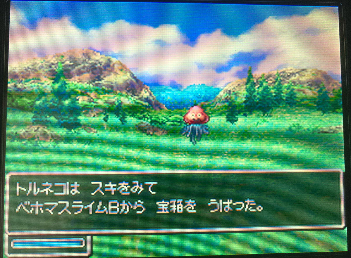 ドラクエ5と違って、4には商人&遊び人&盗賊を兼任するトルネコがいるため、種集めはだいぶ楽でした。かつてのプレイ(PS版)では、魔物からアイテムを盗むのなんてほぼ奇跡のような確率だったらしく、気づきませんでしたが。DS版では、めいれいを「おれにまかせろ」にして、パーティをトルネコだけにすると、トルネコは特殊行動しかしなくなります。転んで会心の一撃を出すか、敵が混乱して自滅するまで、何度でもアイテムを盗むチャンスが生まれるのです。しかも、同じ相手から何度も盗めます。これは非常に助かりました。シリーズの中で一番種集めが楽なのではないでしょうか。